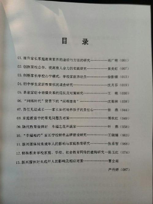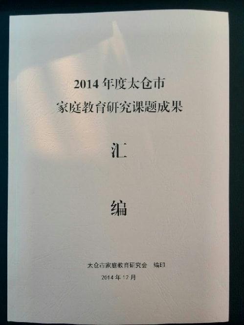 2014年12月26日,太仓市家庭教育研究年会在市妇幼中心举行,市政协主席宋建中、市委常委钱文辉出席年会,年会发布了《2014年太仓市家庭教育研究课题成果汇编》,收入了全市13个成果。我校教师沈菊林、徐燕参加年会,沈菊林老师主持的太仓市家庭教育研究课题《“网络时代”背景下的“闲暇德育”》、徐燕老师主持的太仓市家庭教育研究课题《如何培养孩子的责任心》研究成果入选《2014年太仓市家庭教育研究课题成果汇编》。