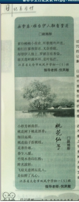 “铃韵诗社”赵旭彤2首词发表于《青少年日记》2015年9期
