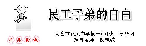 初一5班李华阳作文《民工子弟的自白》发表于《关心下一代周报》2015年6月19日习作版