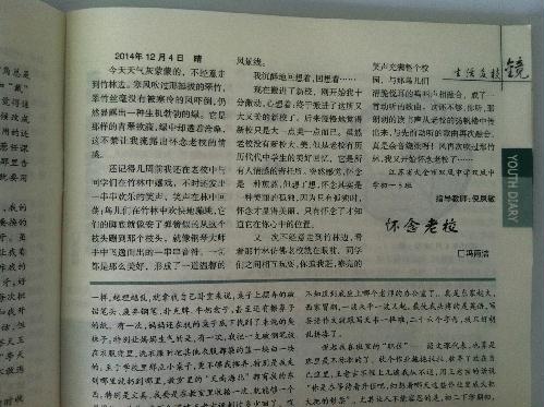 冯雨洁《怀念老校》发表于《青少年日记》2015年6期