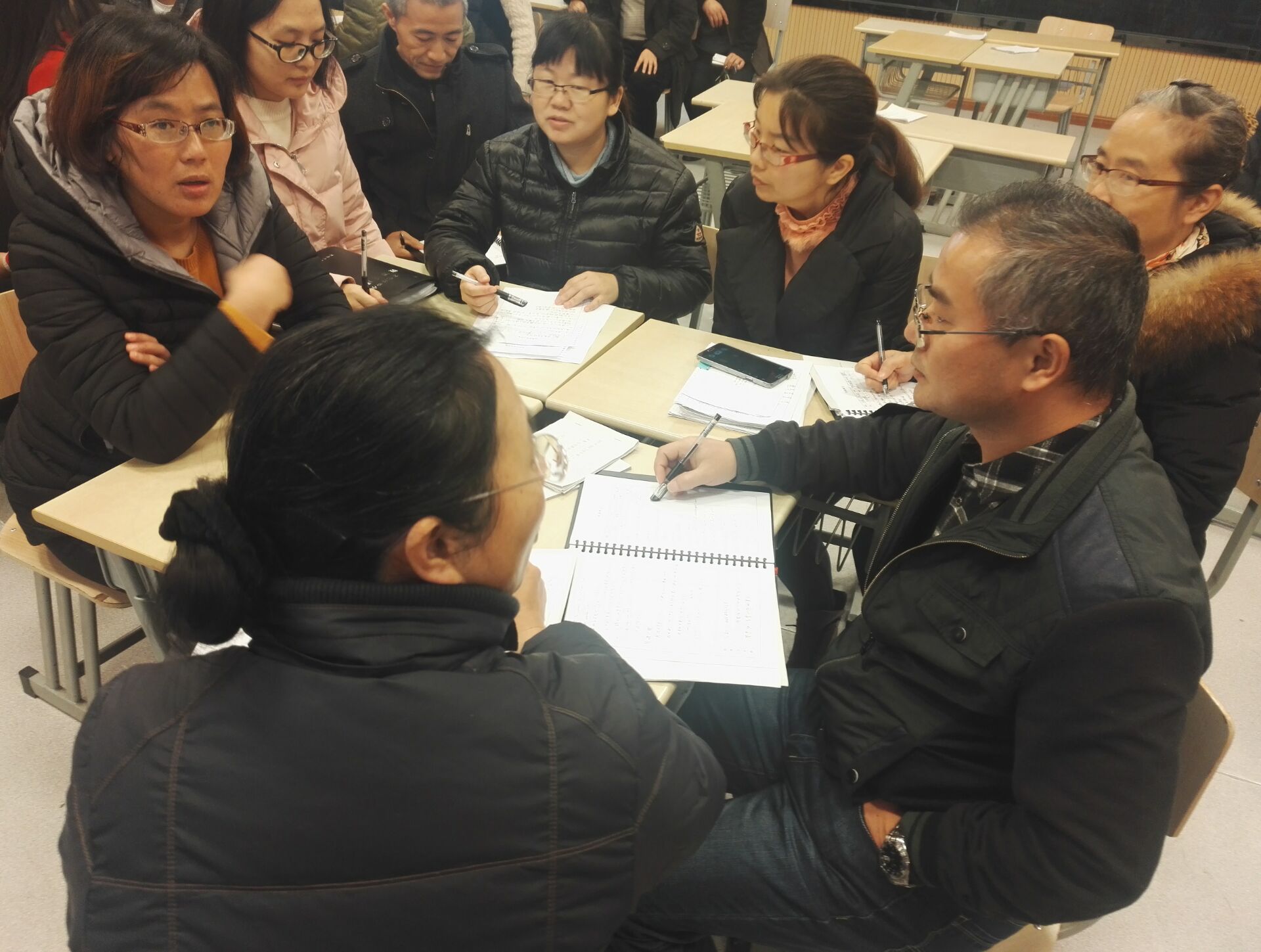 ????? ?2016年12月1日双凤中学在未来教室进行“学生网络化作业交互培训二”活动。本次培训由赵洪明老师主讲,时间从12点到持续到13点,13点到16点为教师练习。 上述培训计以签到、照片和教研记录为准,计一课时,教师自主练习为1课时。共计2课时。 培训内容介绍:在作业盒子里有大量精选习题,教师可以直接使用。教师可以网络化布置作业,在平台上可以详细知道有多少学生未完成作业,可以催交等。学生在课堂上、在家里都可以即时的完成作业。对于客观题平台能自动评分,对错误的实时解题分析,还可以播放教师录音。如教师对现有题集不满意,则可以用拍照出题的方式出题,题目进入个人题库,为今后教学积累资料。 ?