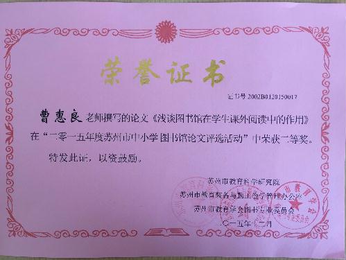 曹惠良老师论文获奖