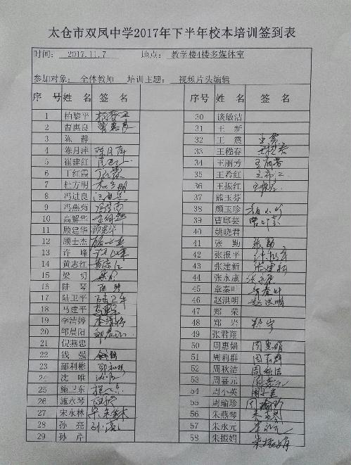??????? ?2017年11月7日星期二中午12:00,在教学楼四楼多媒体教室开展了“2017年信息素养提升第三次培训”。本次培训主要讲解:视频片头编辑方法。在培训中主要例举静态图片片头方法和动态图片片头方法。本次培训参加培训为一课时,提交与本学科结合的片头为一课时,共计两课时。